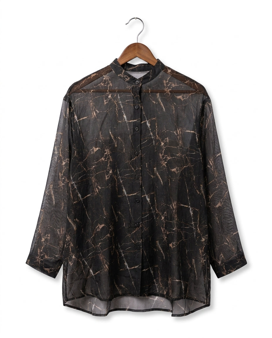 Charcoal Splash Print Chanderi Shirt