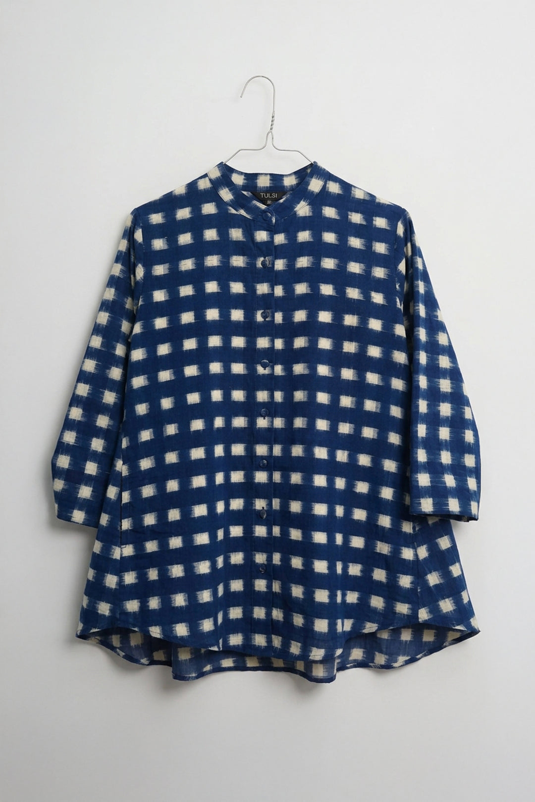 Blue Hand Dyed Shibori Pintucked Silk Tunic
