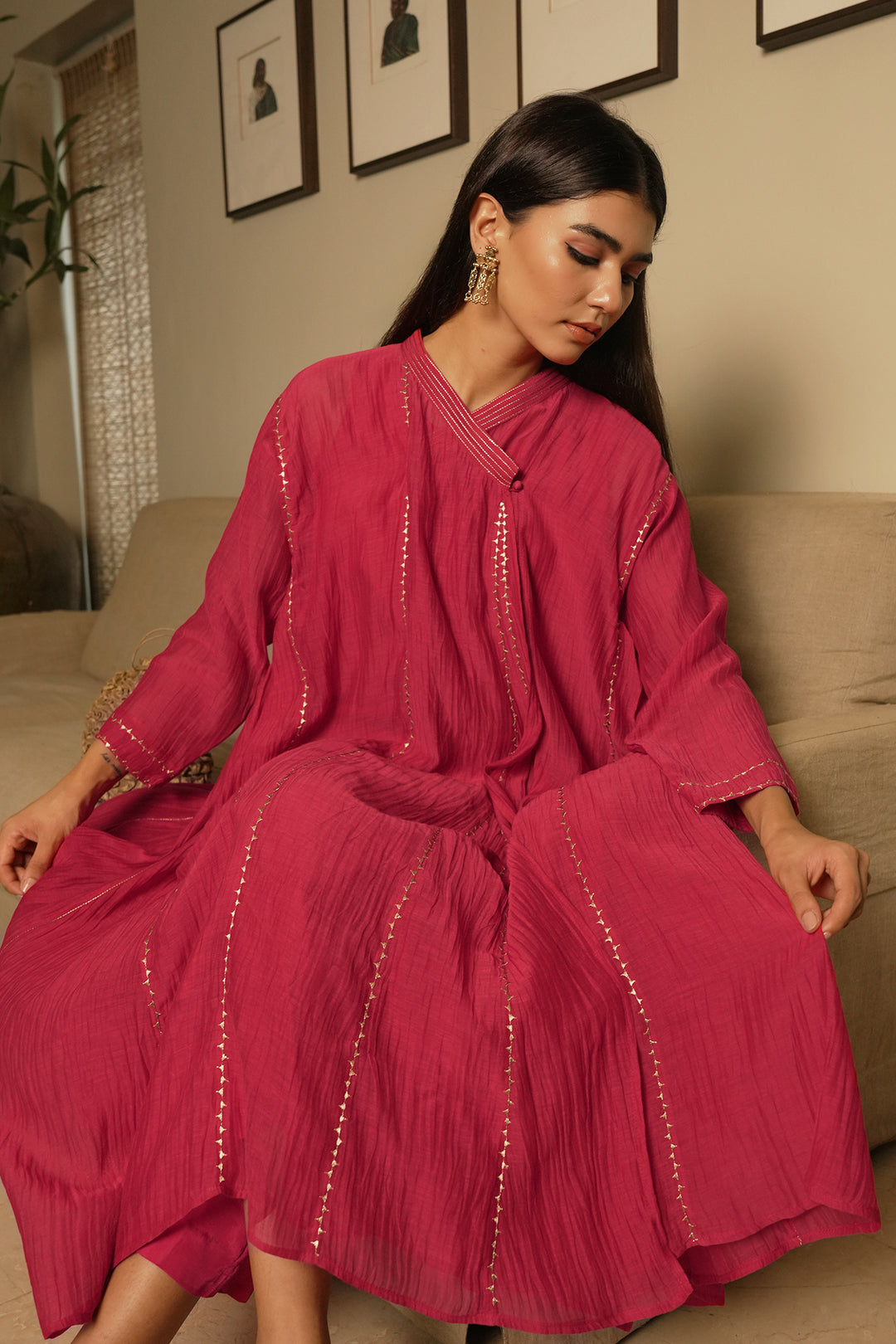 Hot Pink Embroidered Chanderi Choga