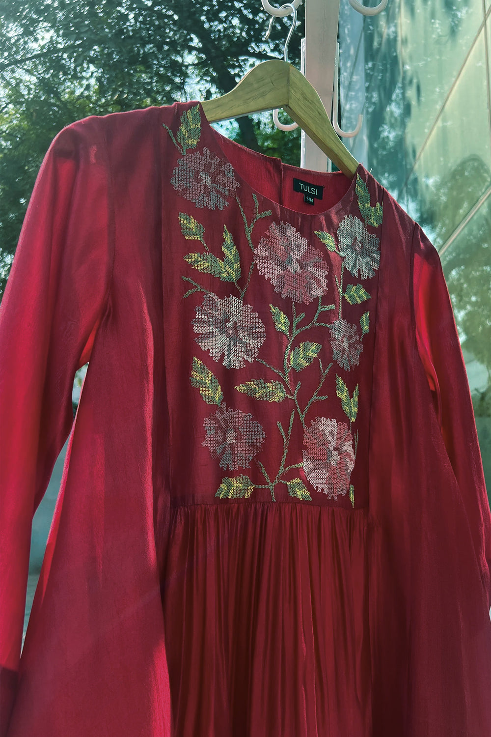 Ombre Grace Thread Embroidered Cotton Silk Long Dress