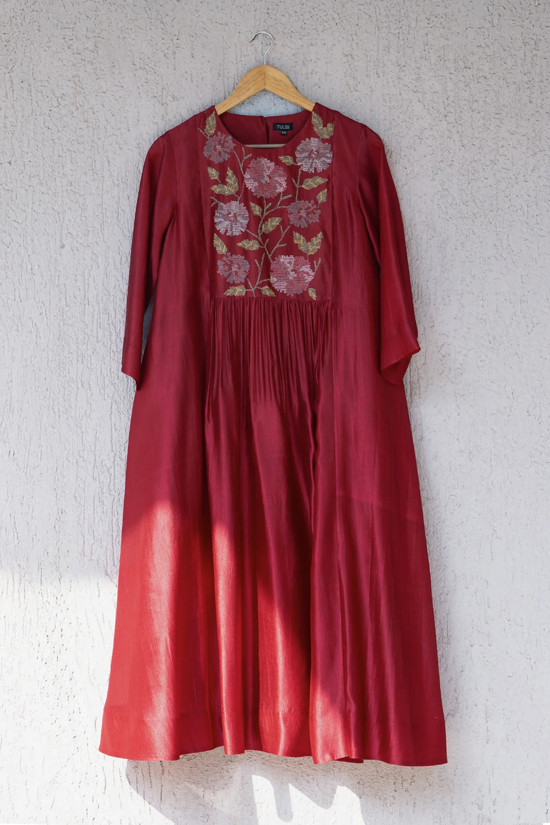 Wine Hand-Dyed Shibori Asymmetrical Dress