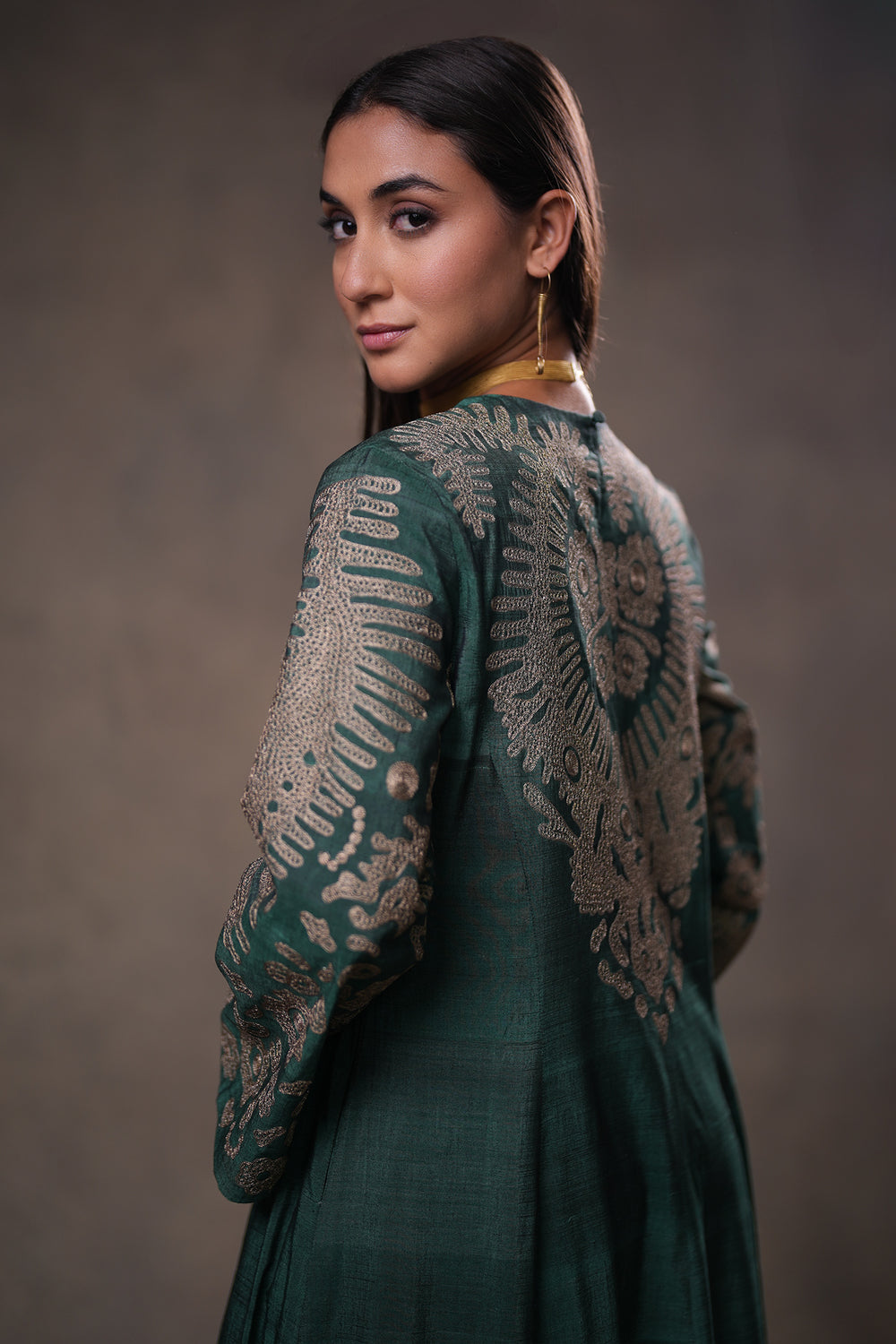 Emerald Green Embroidered Silk Kurta & Pants Set