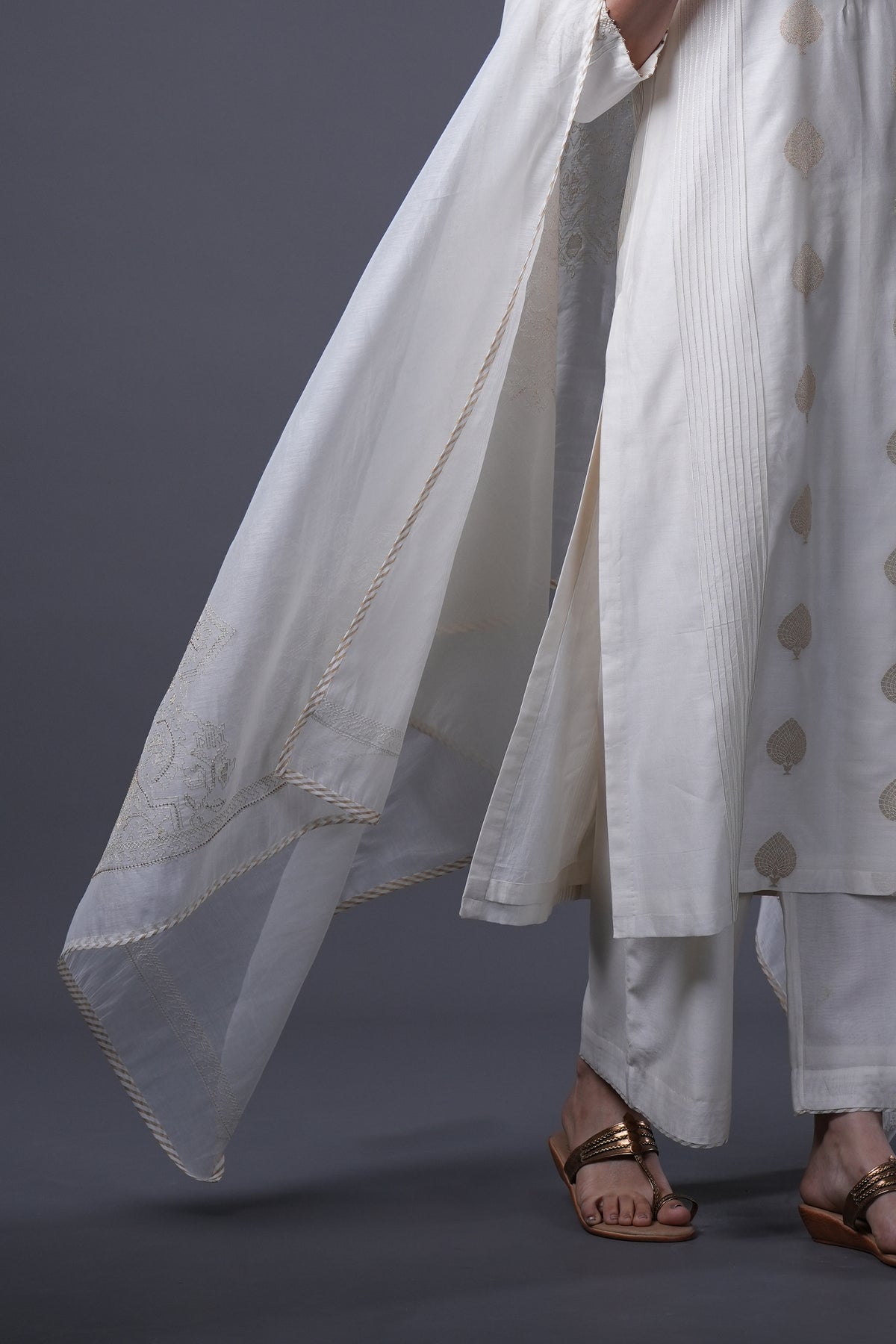 Crafted in natural Chanderi, this dupatta is detailed with subtle hand embroidery. Light, fluid, and timeless, it reflects Tulsi’s understated aesthetic while adding refinement to everyday and festive wear.