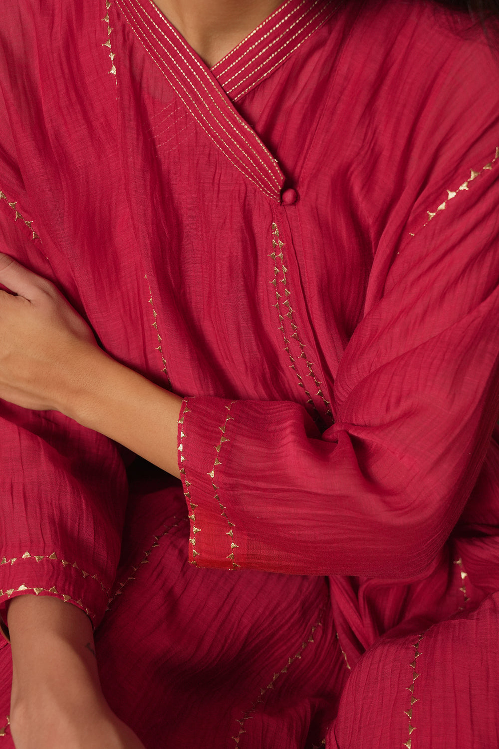 Red Embroidered Cotton Silk Kurta with Dupatta and Pants