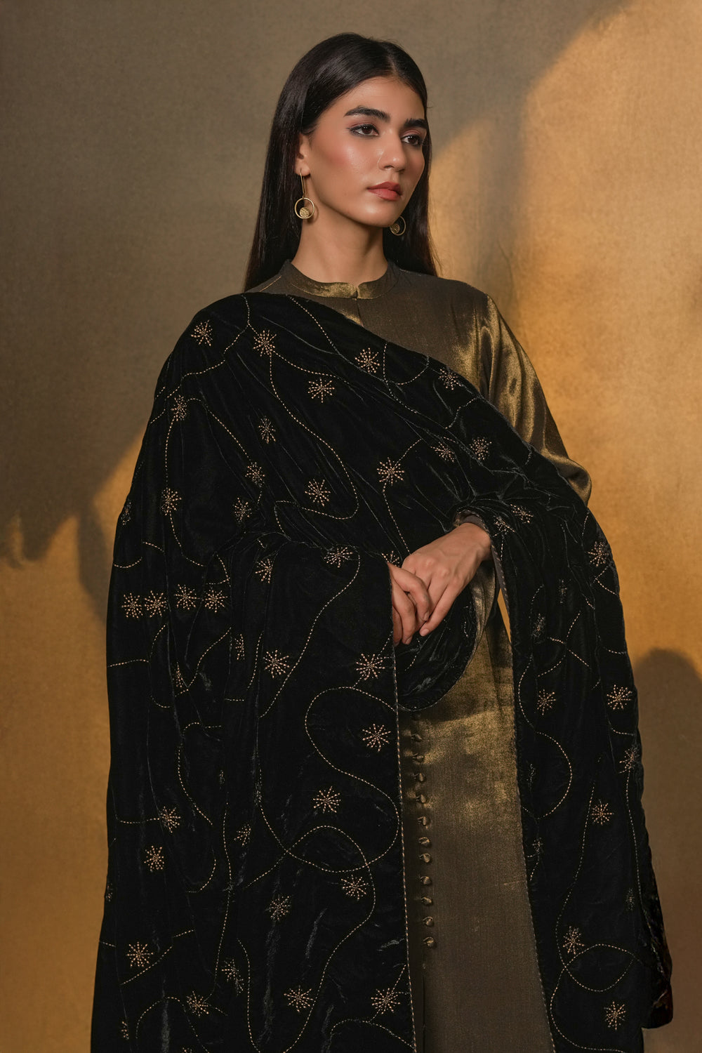 Black Tissue Kurta with Pants and Velvet Dupatta