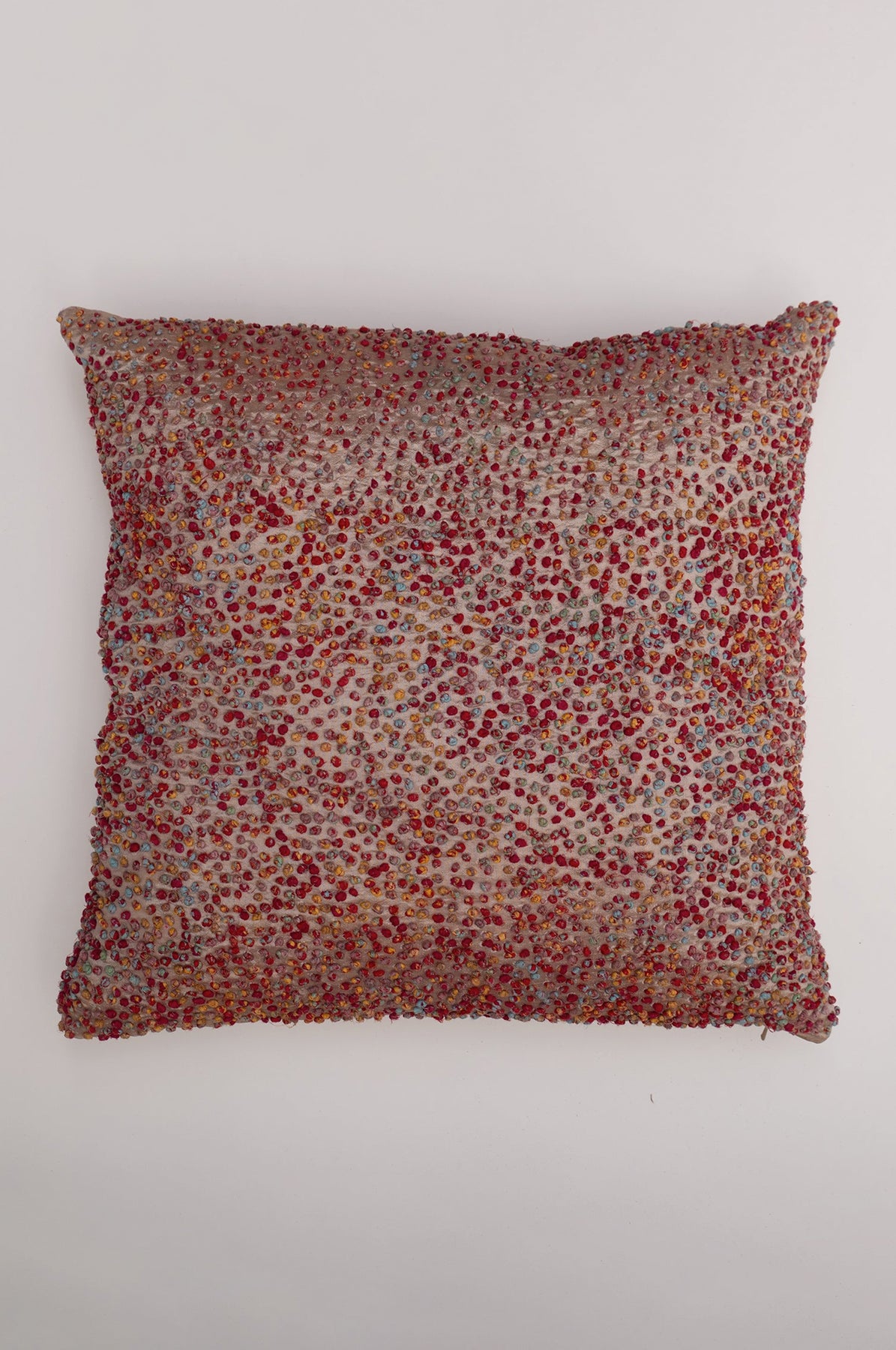 • Cushion cover with hand-done french knots with cotton fabric in varying colors on the front creating a 3D texture