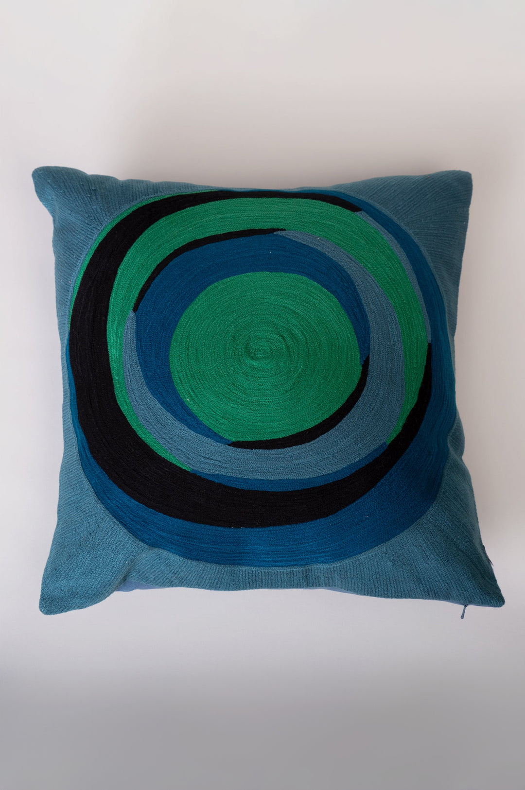 Blue Green Embroidered Cotton Cushion Cover