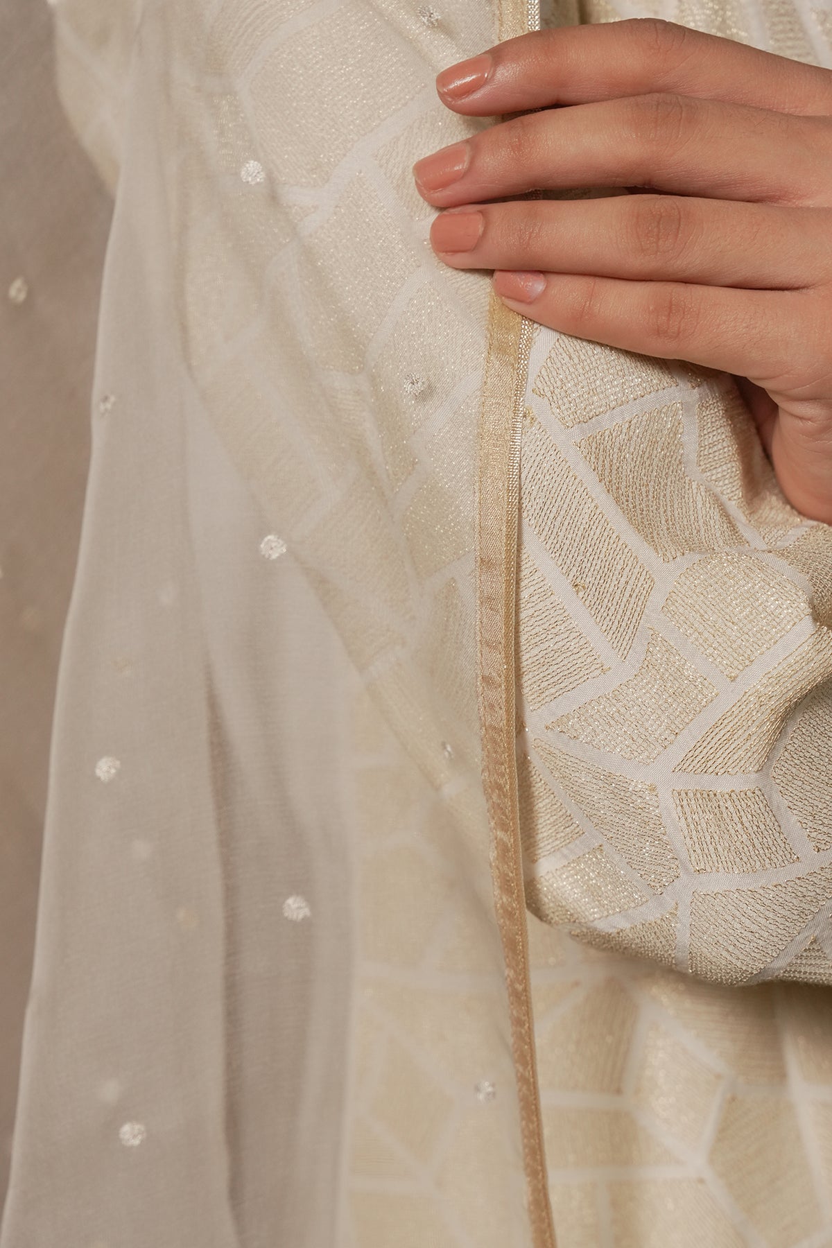 Natural Embroidered Cotton Silk Kurta with Dupatta and Pants