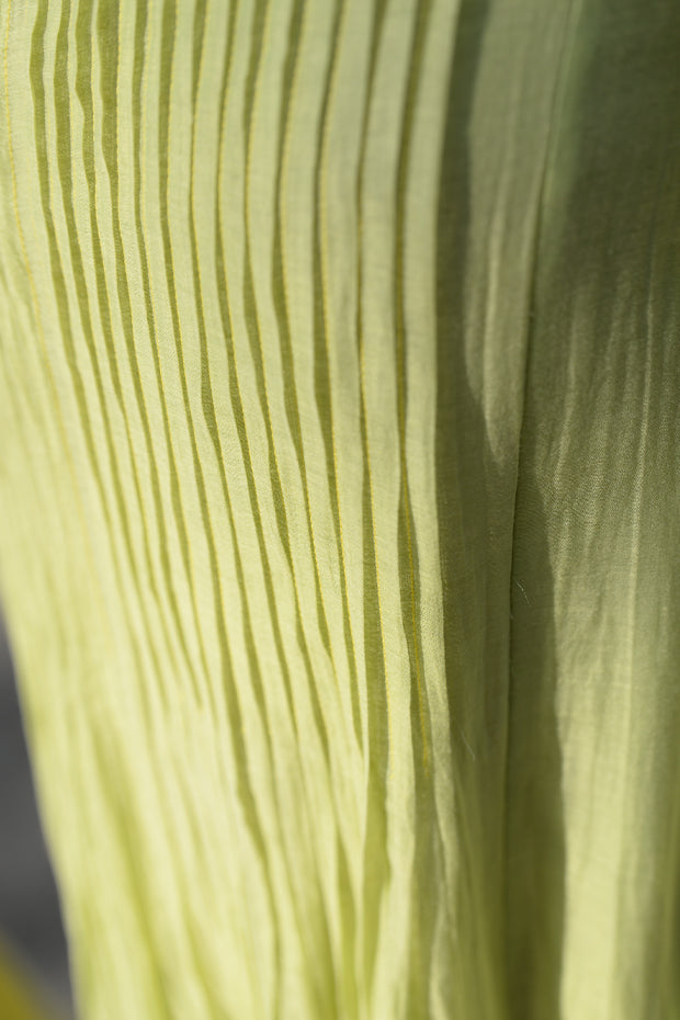Lime Green Pintuck Embroidered Chanderi Cape with Slip