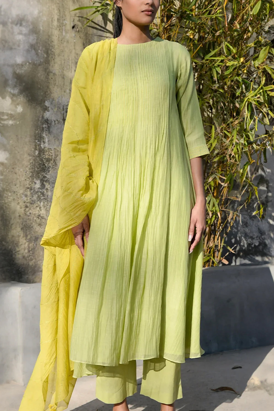Yellow & Green Ombre Chanderi Dress