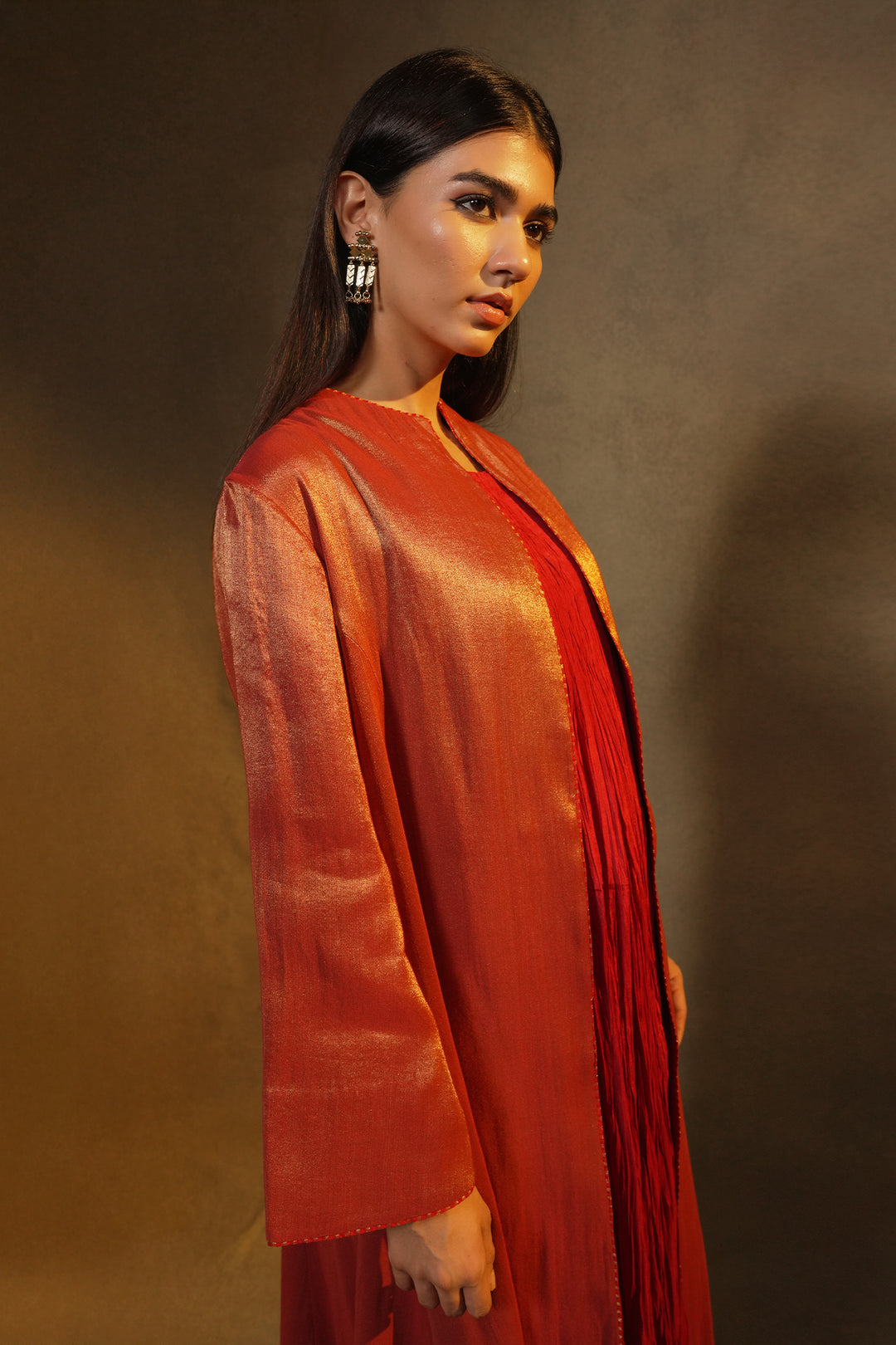 Maroon Tissue Kurta with Pants and Hand Embroidered Dupatta