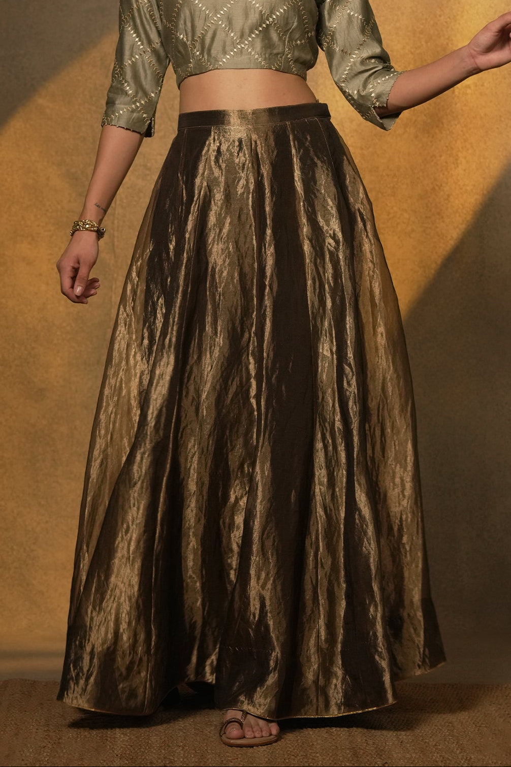 Golden Stripe Tissue Blouse with Lehenga and Dupatta