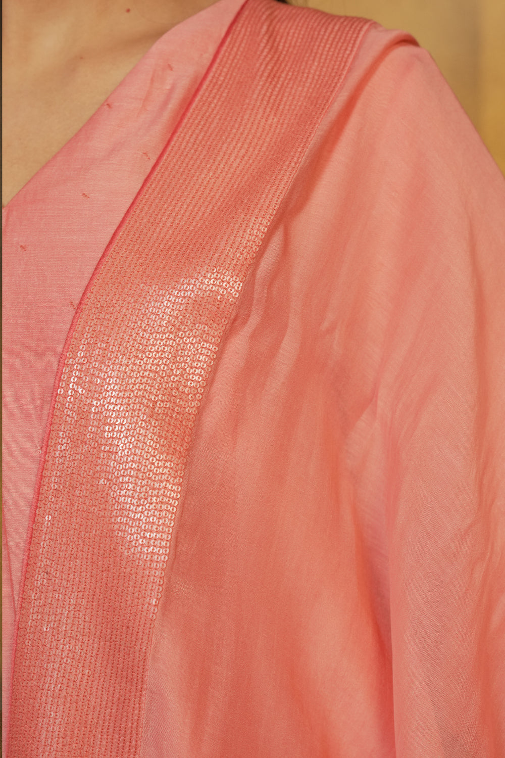 Peach Hand Embroidered Chanderi Kurta with Pants and Dupatta