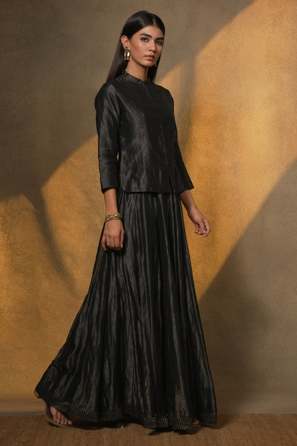 Navy Blue Chanderi Embroidered Kurta, Dupatta & Skirt Set