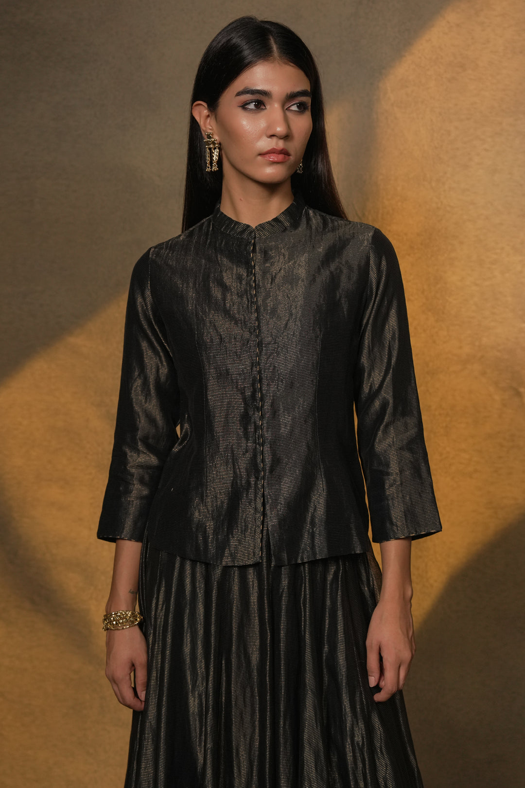 Black Stripe Tissue Blouse with Lehenga and Dupatta