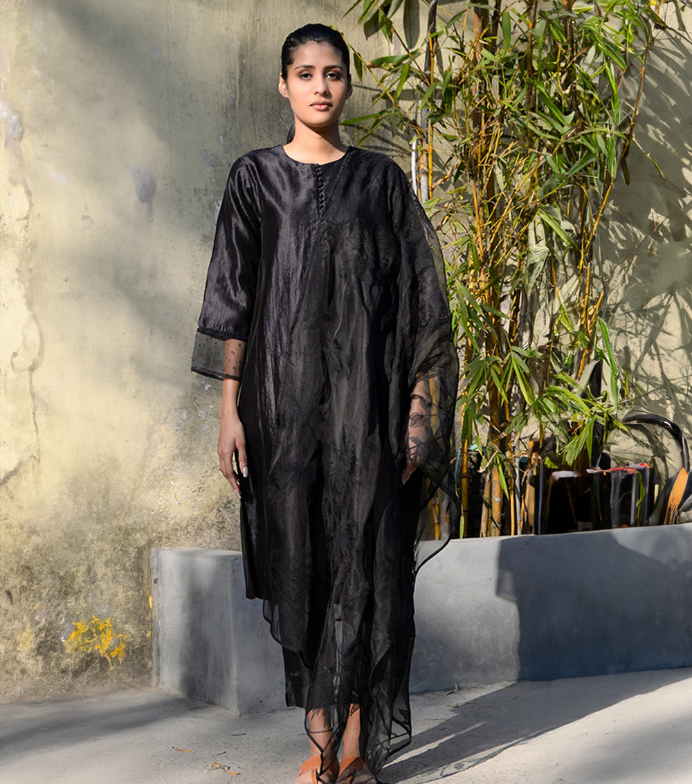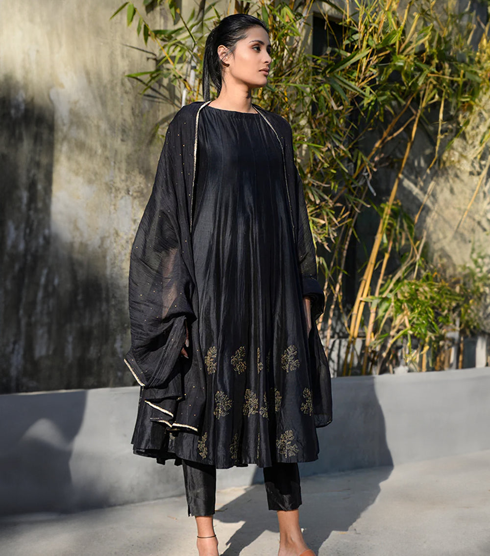 Hand Embroidered Kurta Set with Sequinned Sleeves