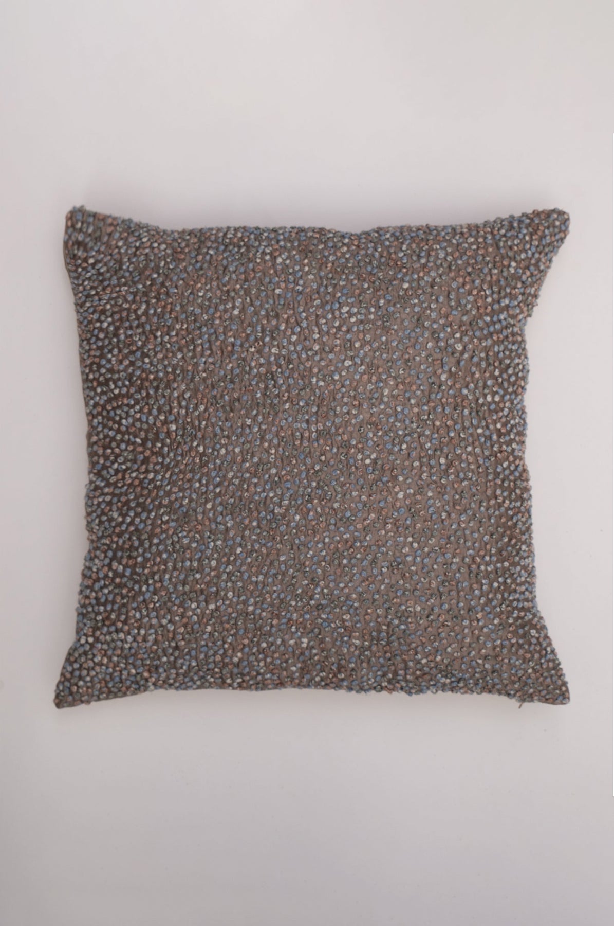 • Cushion cover with hand-done french knots with cotton fabric in varying colors on the front creating a 3D texture