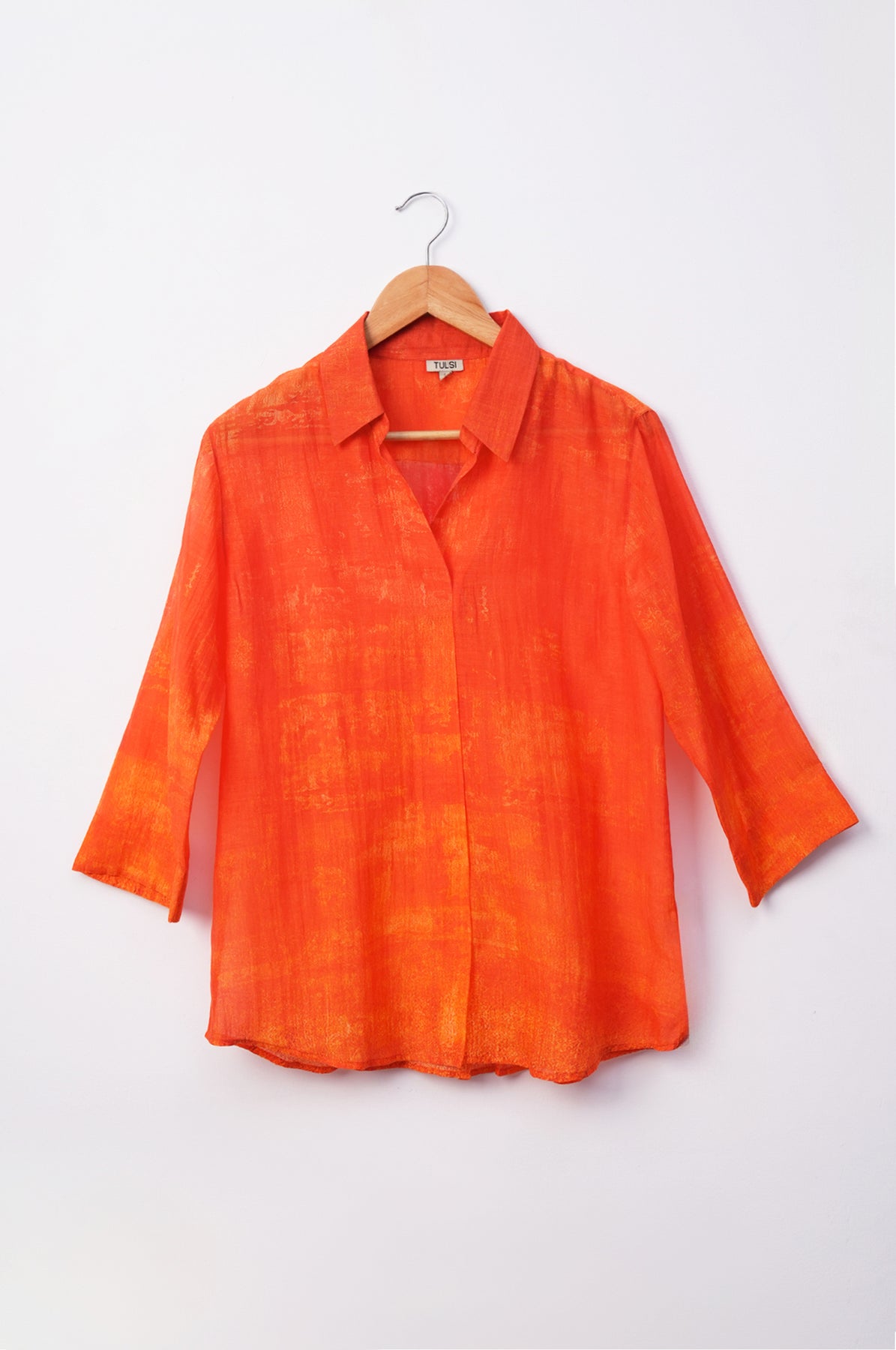 Orange Printed Chanderi Shirt